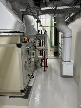 - Hygienic AHU located in a new adjacent plant space to supply conditioned air to the SCF through a range of pre-insulated phenolic ductwork and ceiling mounted gel seal H14 terminal HEPA filters: